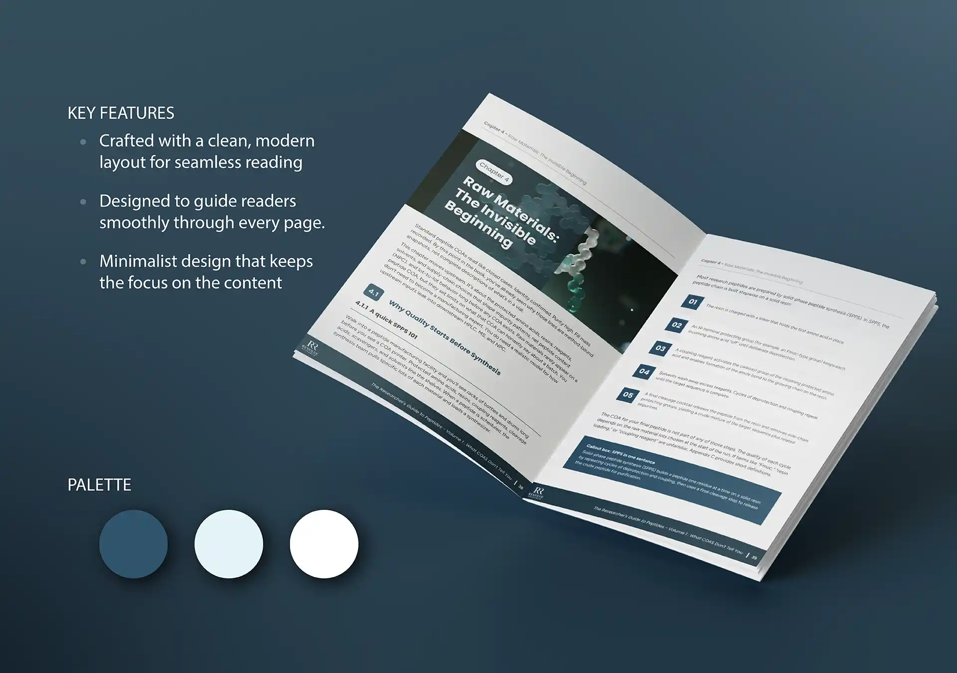 The Peptide Handbook is a scientific-focused digital publication designed to present complex medical and biochemical information in a clear, structured, and visually engaging format. This project centered on transforming dense scientific content into a professional and highly readable eBook design.